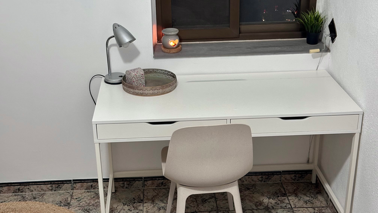 Disfruta de una habitación moderna, cómoda y con estilo natural, con luz directa desde el mediodía y durante la tarde gracias a su orientación Sur-Oeste. Equipada con mobiliario funcional y detalles modernos, ofrece un organizado espacio de almacenamiento y zona de estudio, ideal para estudiantes o profesionales que buscan tranquilidad y confort.